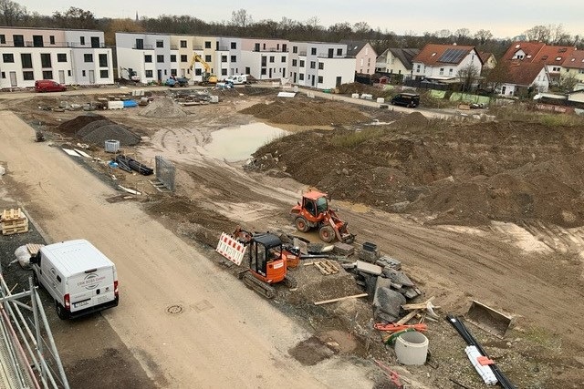 Wir erstellen den Rohbau für ein Mehrfamilienhaus mit 4 Obergeschossen und 29 Wohneinheiten sowie einer gemeinsamen Tiefgarage.